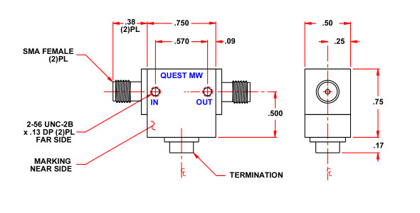 | Model Number | Frequency | Isolation | Insertion Loss | VSWR | Power Fwd/Rev | Size in inches |