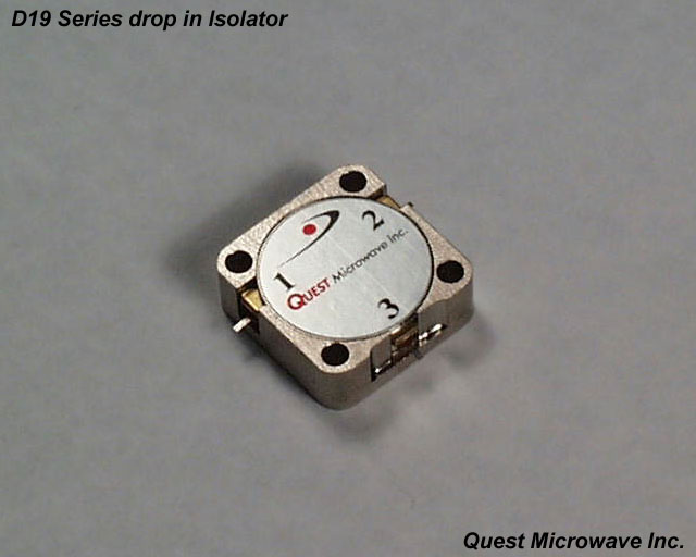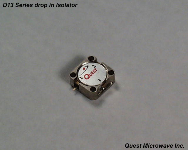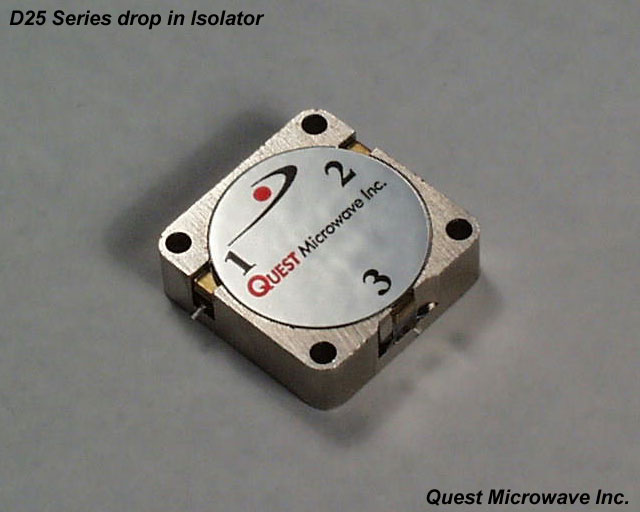 The D25 series is a conventional thru hole mount drop in device covering from 800 MHz to 1.7 GHz. Click on the image or drawing to enlarge it for more detail. The model number listed below is for isolators, change the "T" to a "C" for circulators. |