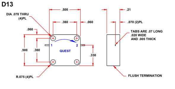 | D13-R1414T01 | 14.1 to 14.5 GHz | 20 dB Min. | 0.5 dB Max. | 1.25:1 Max. | 30w / 10w | .50x.50x.21 |