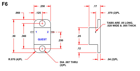 | F6-R1112T01 | 11.7 to 12.2 GHz | 20 dB Min. | 0.5 dB Max. | 1.25:1 Max. | 5w / 1w | .250x.50x.17 |